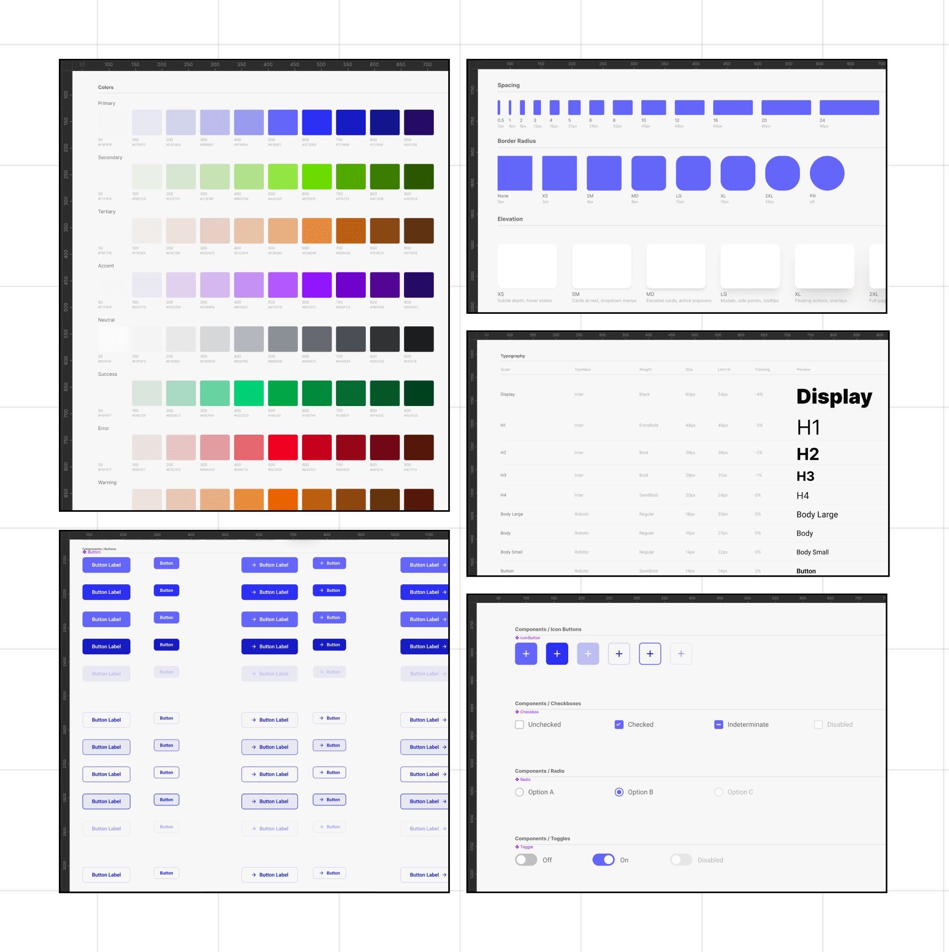 Final export in figma. Creates Typography, Colour and elevation styles. Also generates the starter kit in a new page in figma file with component and its variants as well.