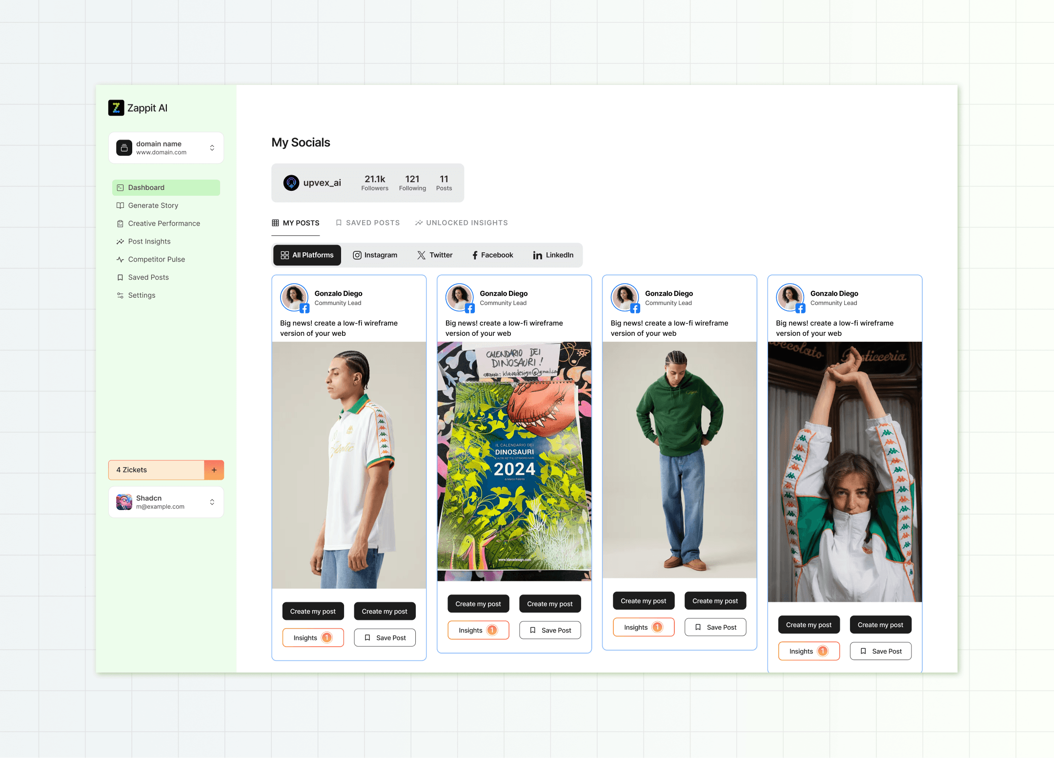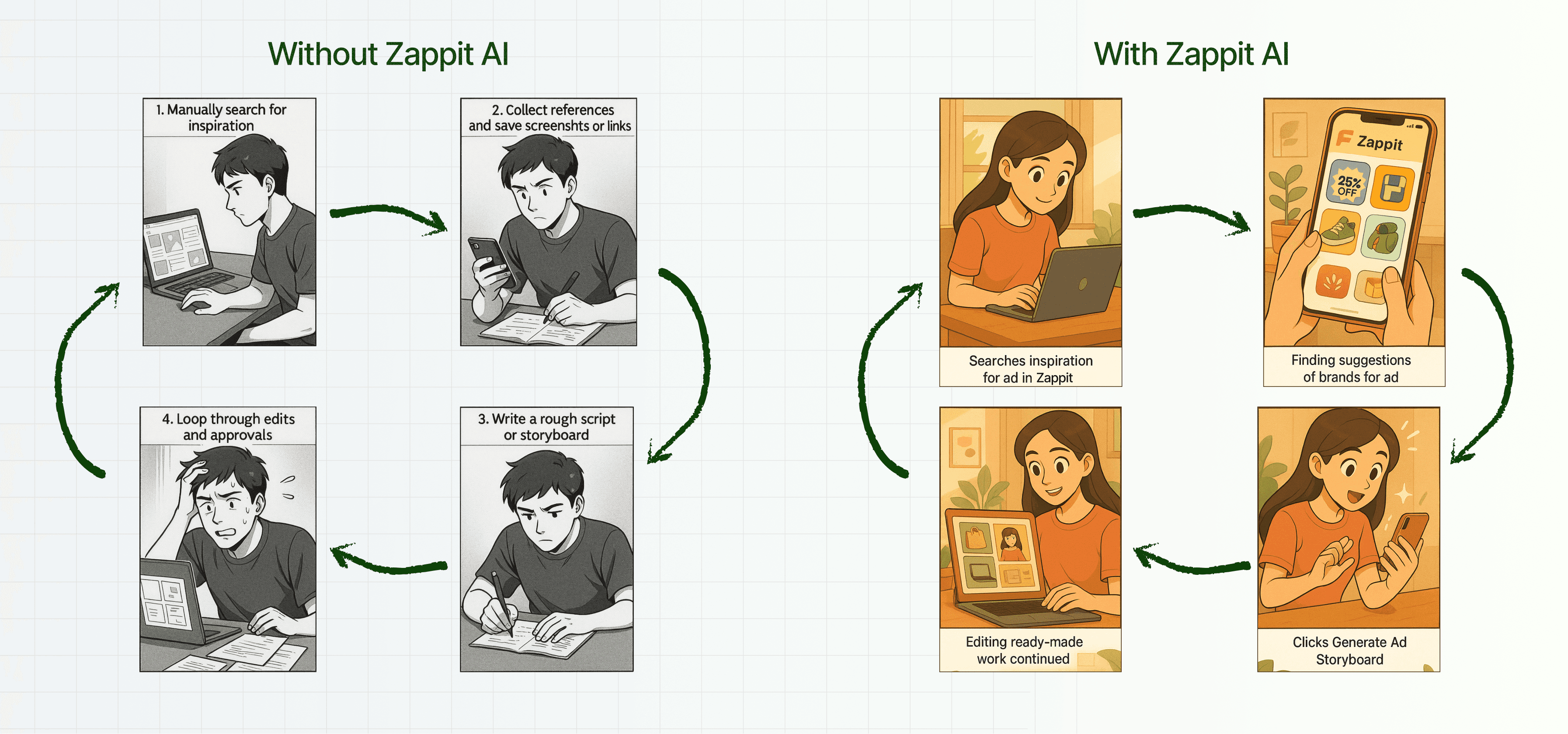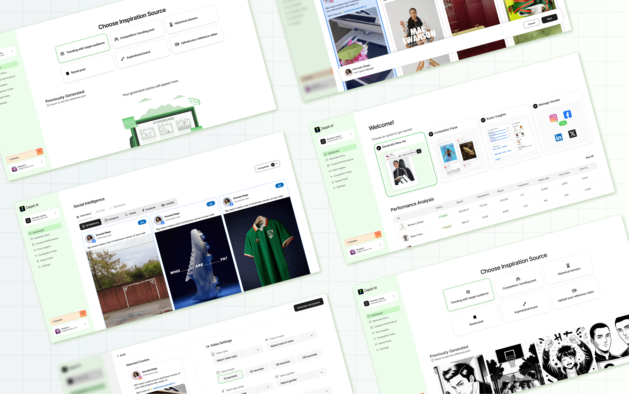 Zappit AI’s dashboard allows users to create an ad storyboard in minutes, streamlining everything from brainstorming to finding inspiration through posts by other brands.