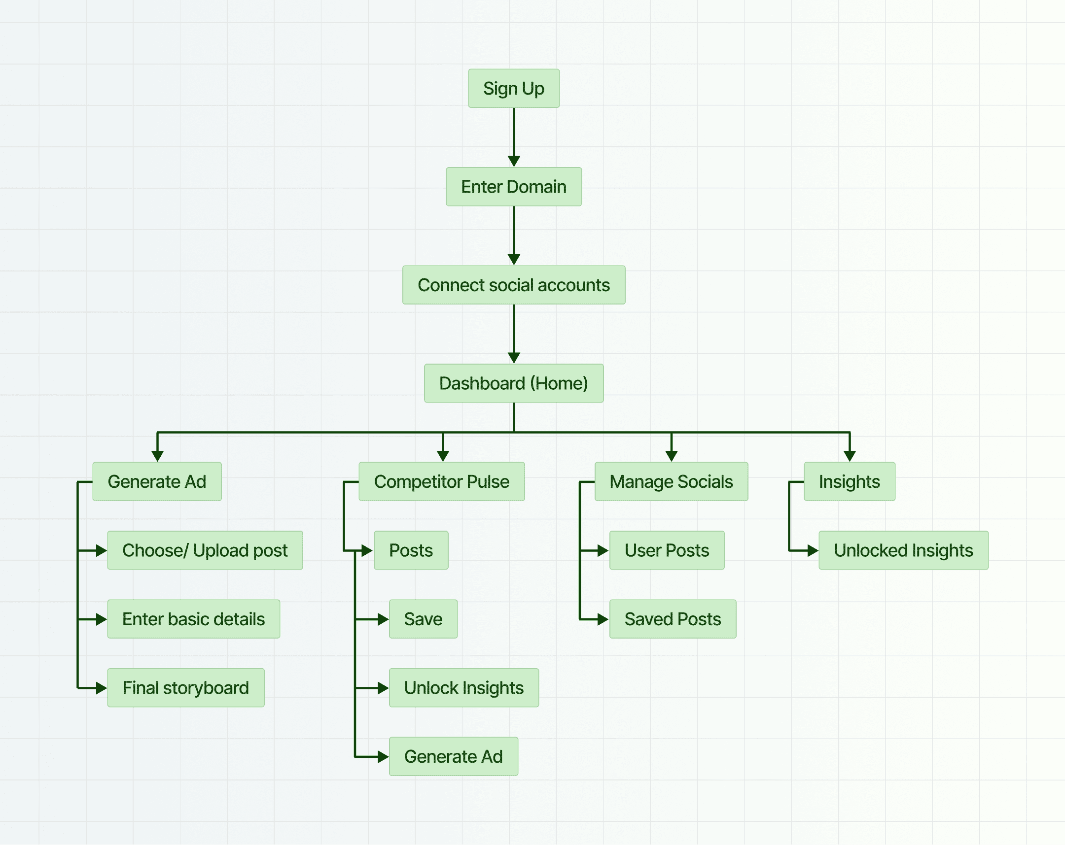 Below is the information architecture I designed to map the flow clearly before jumping into wireframes.